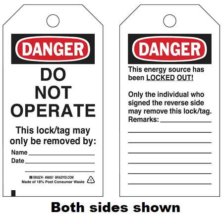 Lockout Tags, "DO NOT OPERATE", Plastic w/Grommet, 25/pkg