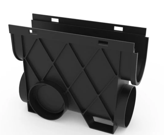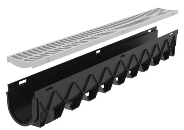 Channel Catch Basin, Inline, Grey Grate, Storm Drain Channel Accessory, RELN