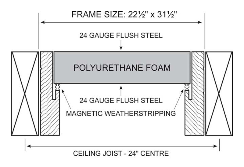 Attic Access, 22" x 30", Insulated, Steel & Wood