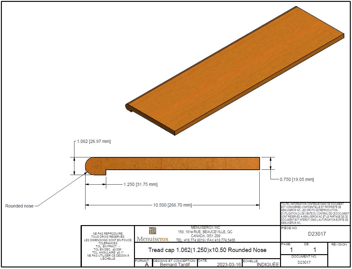 Stair Tread, Oak Laminated Recap, 1-1/16" x 10-1/2" x 42"