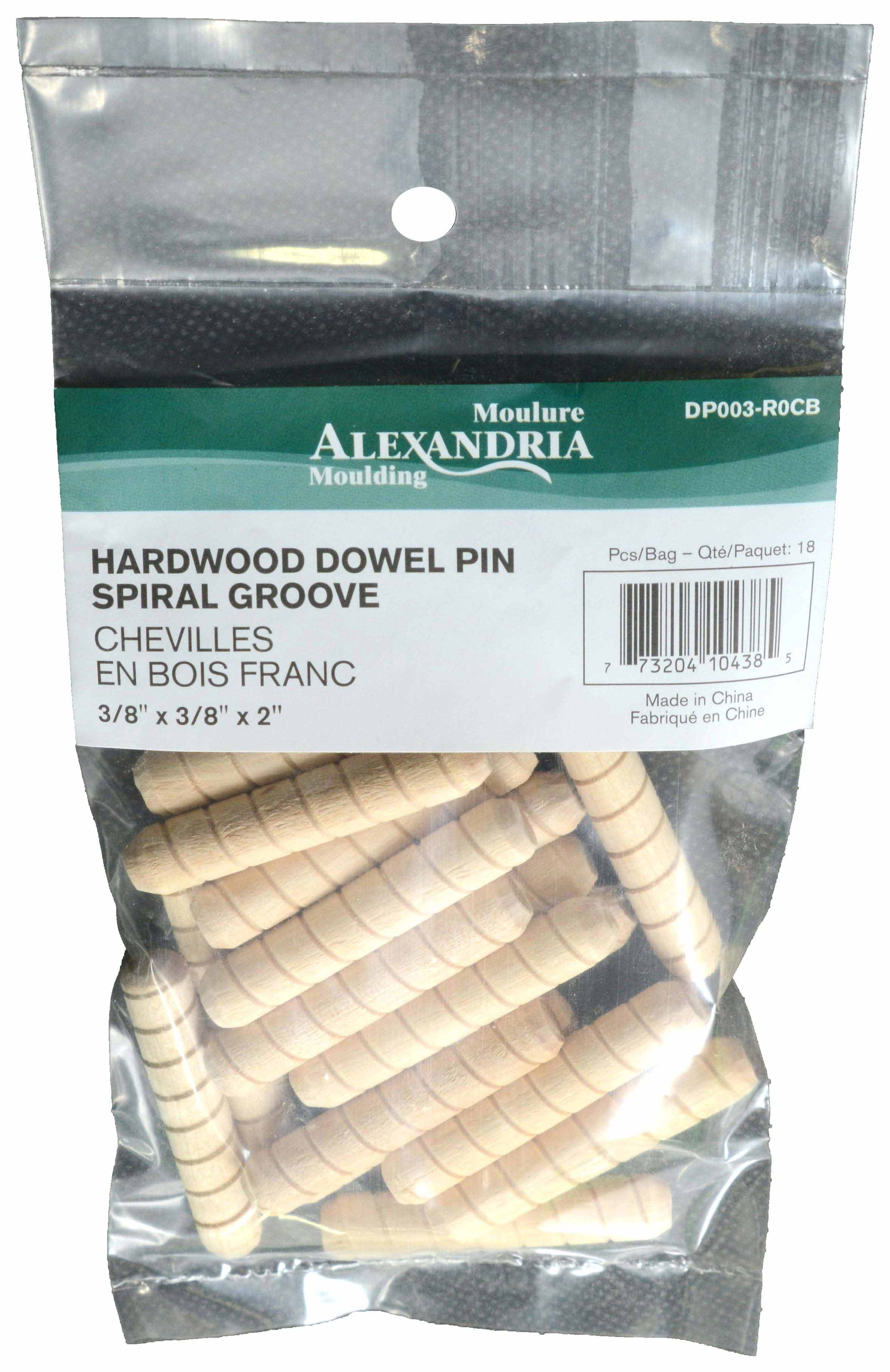 Dowel Pin, Wood, Spiral, 3/8" x 2", 18/pkg