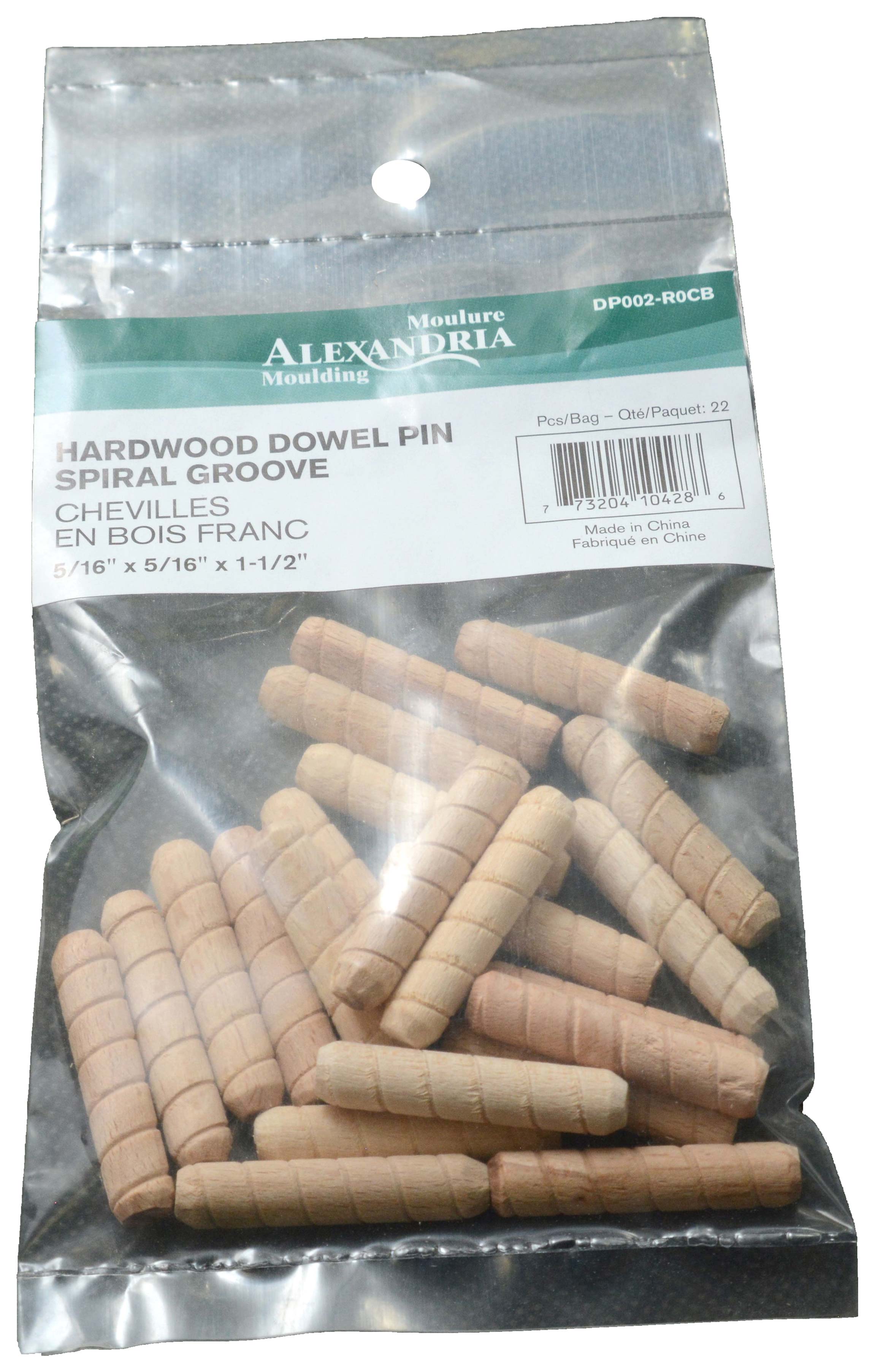 Dowel Pin, Wood, Spiral, 5/16" x 1 1/2", 22/pkg