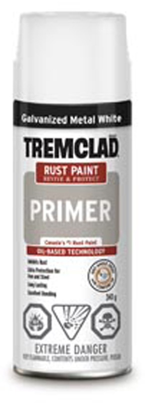 Rust Paint, WHITE GALVANIZED PRIMER, 340 gram spray, Tremclad