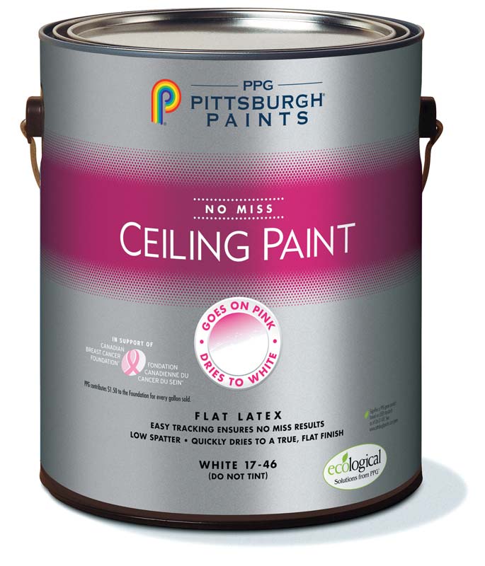 Ceiling Paint, Interior, Latex, PPG NO-MISS, White, 3.78 liter