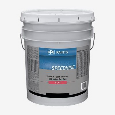 Paint, Interior, Latex, SPEEDHIDE SUPERTECH, Flat, Dry-Fog, White/Pastel Base, 18.9 liter