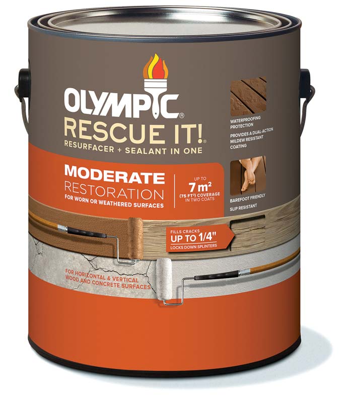 Olympic, Rescue-It, Wood/Concrete Resurfacer. Latex, Flat, 3.78L