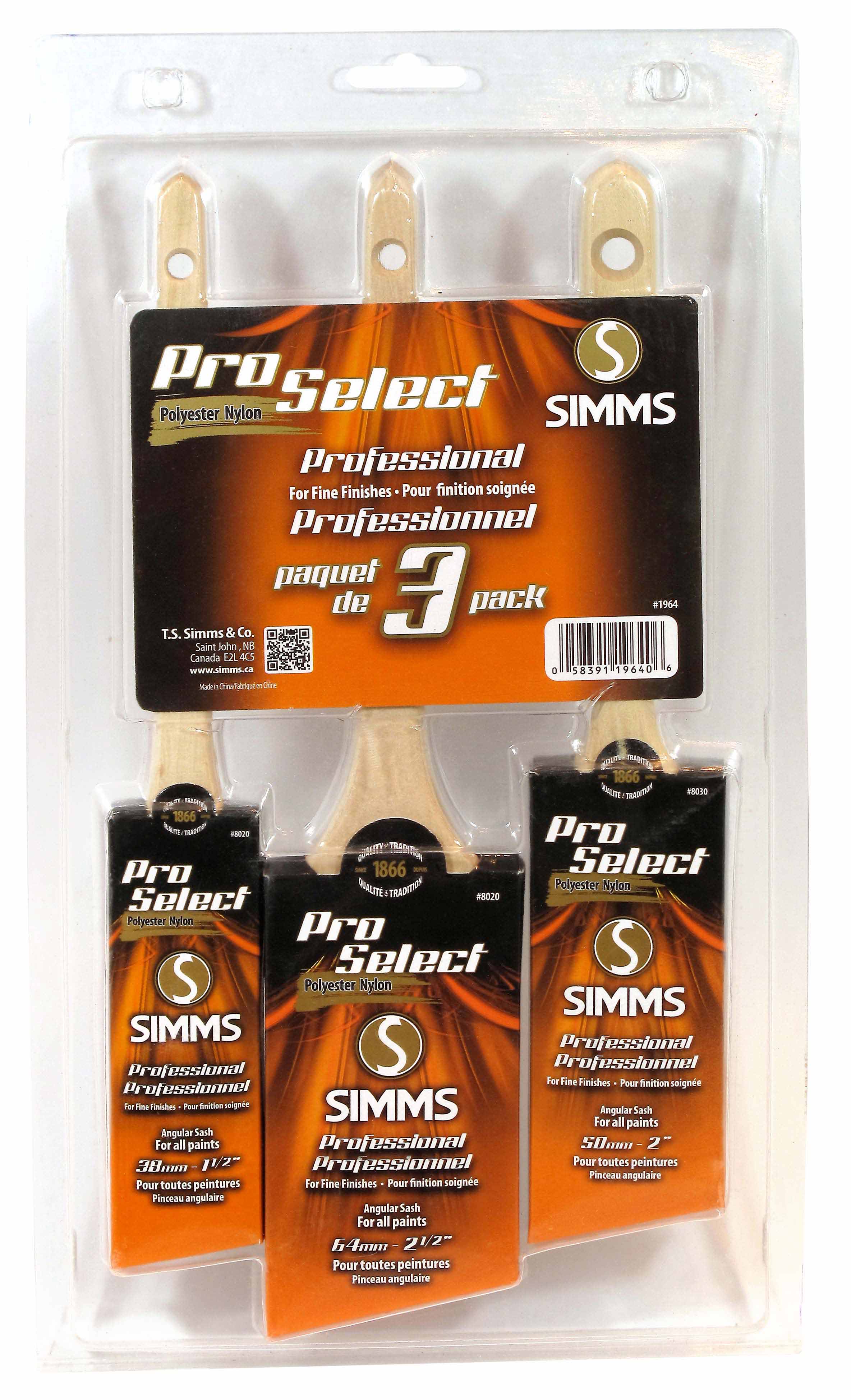 Paint Brush Set, Pro Select, Poly/Nylon Angular, 3pc