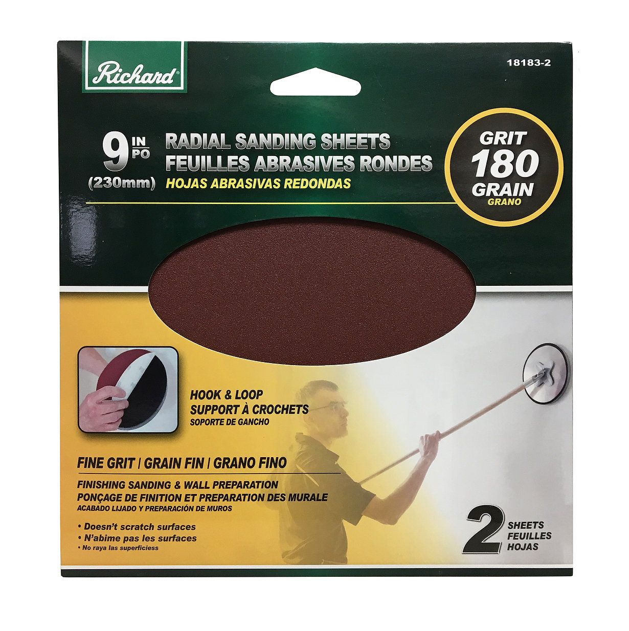Sanding Sheet, 9 Inch Round, 180 Grit, 2/pkg, Richard