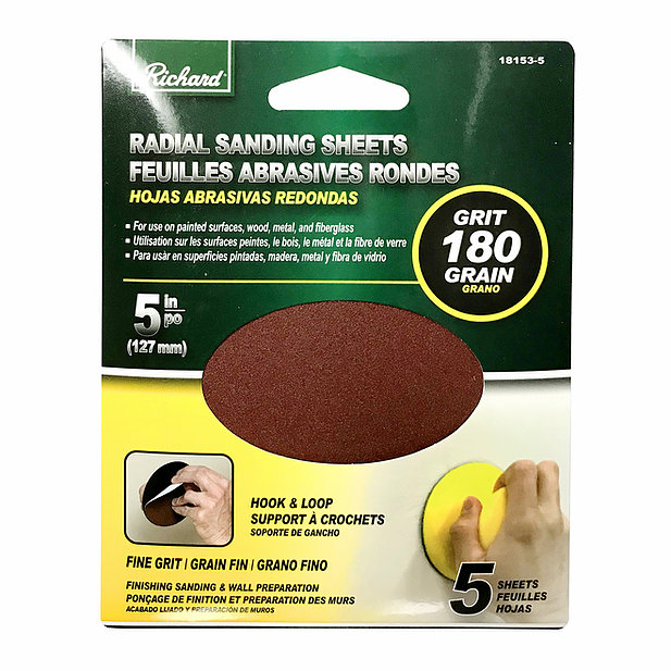 Sanding Sheet, 5 Inch Round, 180 Grit, 5/pkg, Richard