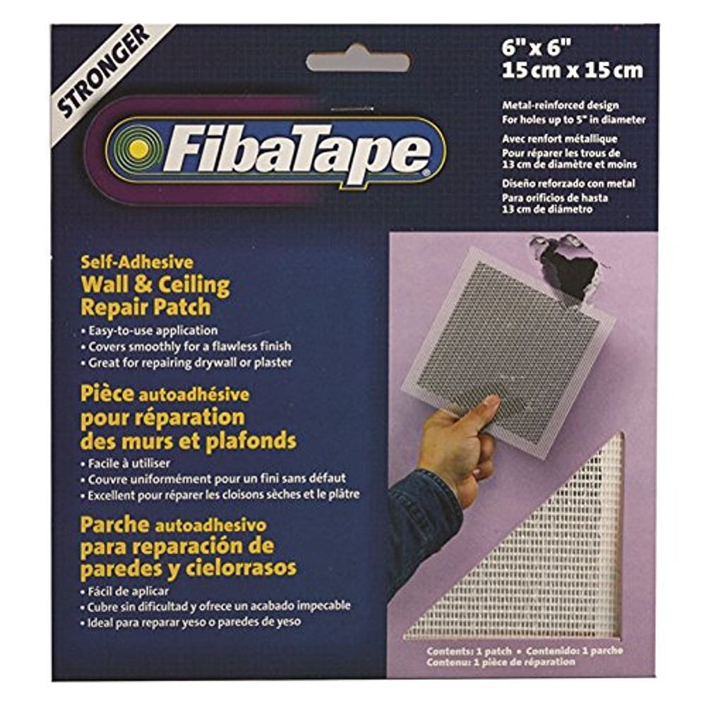 Drywall Repair Patch, FIBATAPE, Wall/Ceiling, Self Adhesive, 6" x 6"