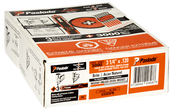 Strip Framing Nails, 3-1/4" x .120, Smooth, Brite, 1000/box with Fuel Cell (Paslode)