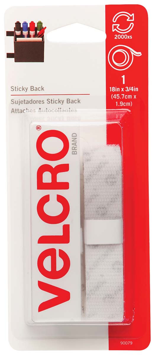 Velcro Strip, Peel & Stick, 3/4" x 18", WHITE, 1/pkg