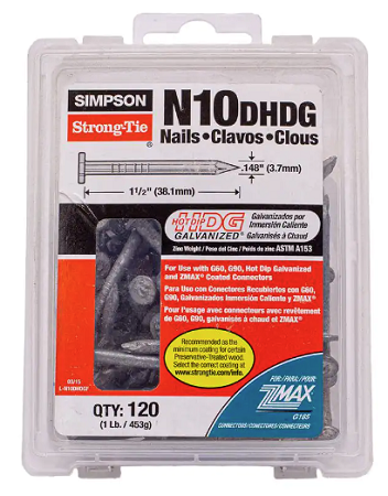 Nails, Joist Hanger 10D, 1-1/2", Galvanized, 120/pkg