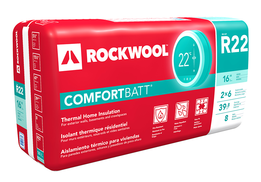 Insulation, Rockwool Comfortbatt, R22 x 5.5" x 15.25", Wood Framing, (39.8 sq ft/8 batts per bag)