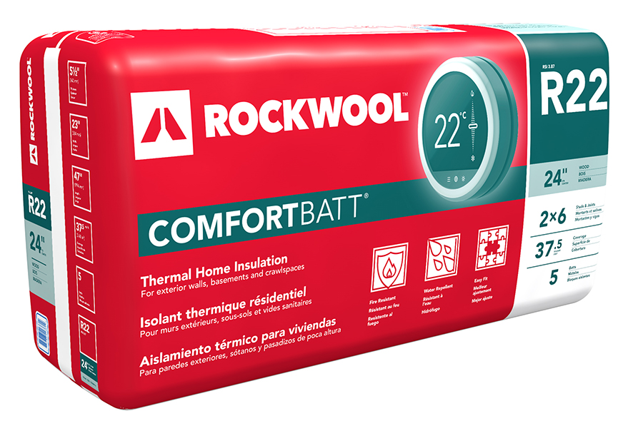 Insulation, Rockwool Comfortbatt, R22 x 5.5" x 23.0", Wood Framing, (37.5 sq ft/5 batts per bag)