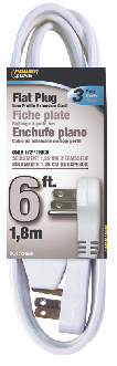 Extension Cord, Indoor, 16/3 SPT x 6 ft, Slimline w/Flat Plug, 3 Outlet, WHITE, Powerzone