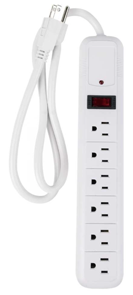 Power Bar, 6-Outlet, Lighted On/Off Switch, Surge Protected, 3 foot Cord, WHITE