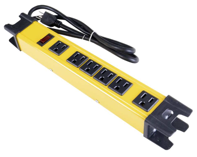 Power Bar, 6-Outlet Metal Case, Lighted Switch, Surge Protected, 4 foot Cord, YELLOW, Shopro