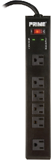 Power Bar, 6-Outlet, Lighted On/Off Switch, Surge Protected, 3 foot Cord, BLACK, Powerzone