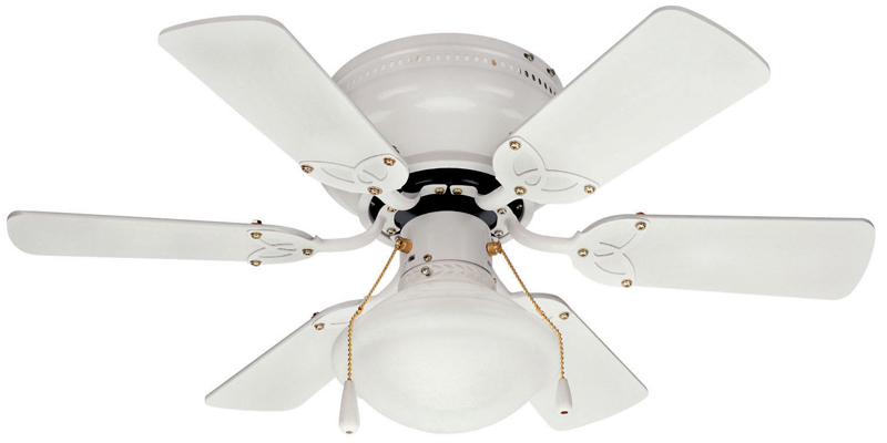 ~Ceiling Fan 30" dia, 6-Blade, Hugger-Style, WHITE, w/Globe Light