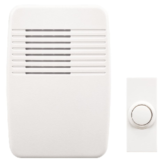 ~Door Chime, 120 VAC Plug-In, Wireless Button, WHITE, Heathco