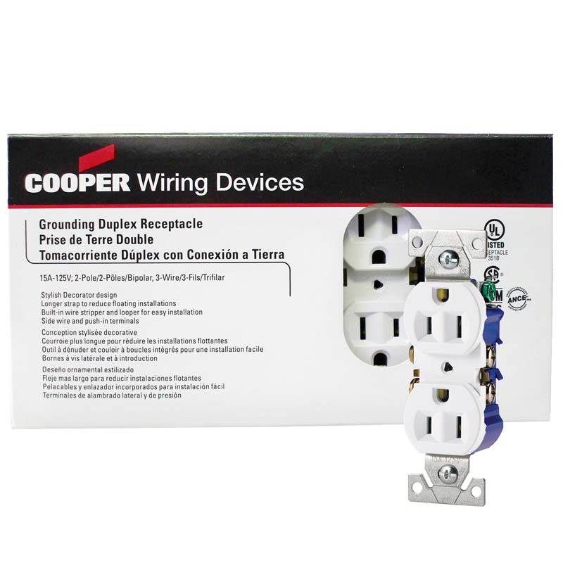 Receptacle, Duplex, Standard, WHITE, 15 amp, 125 volt, 10/pkg