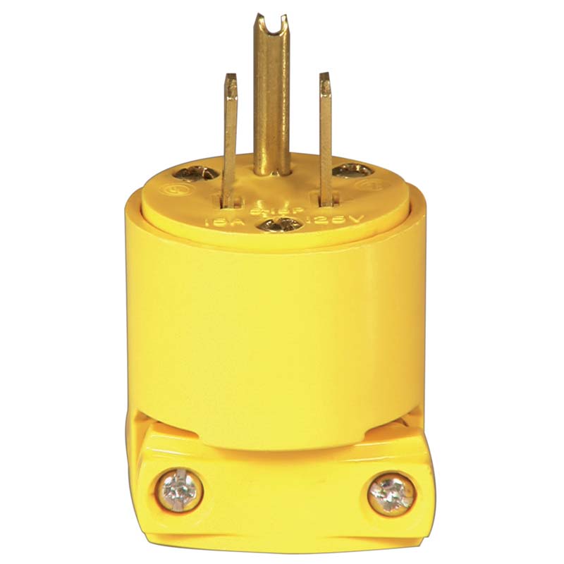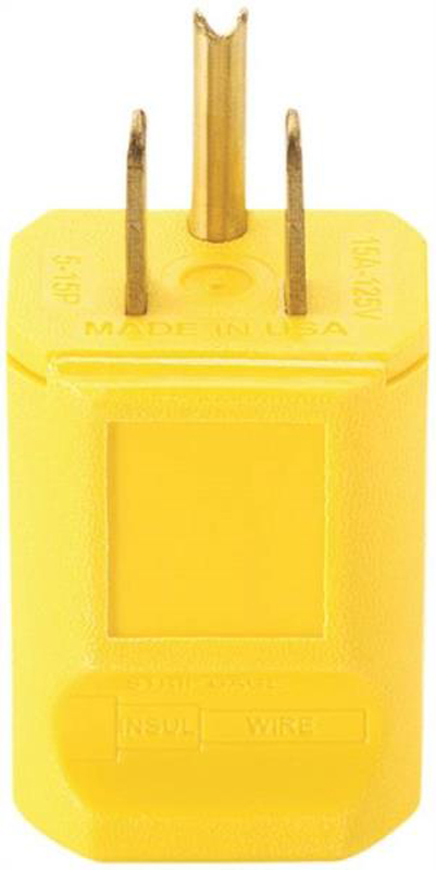 Electrical Plug, 3-Prong, Plastic/Vinyl, 15 Amp/125 Volt, YELLOW