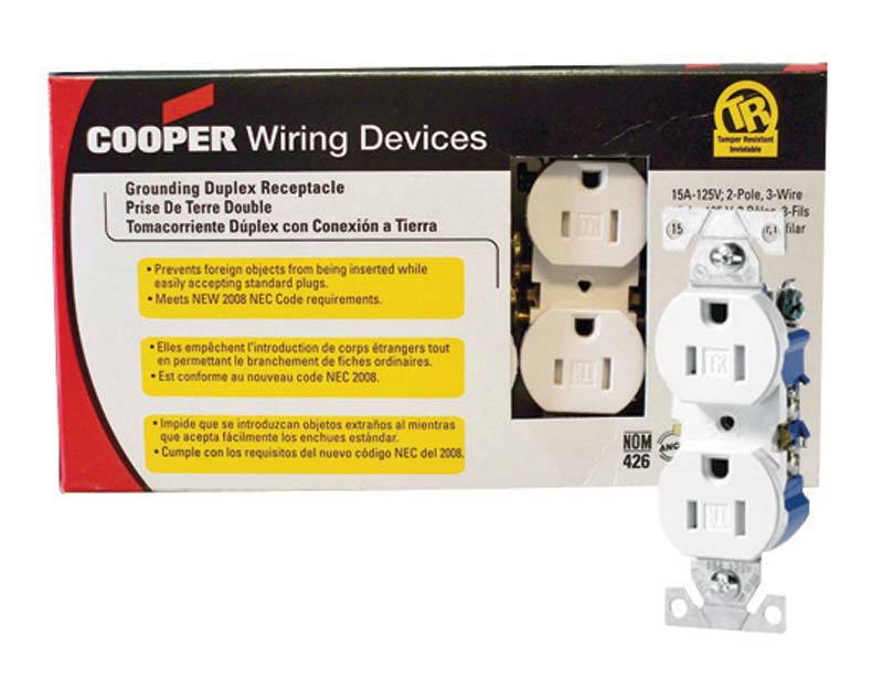 Receptacle, Duplex, Tamper-Resistant, WHITE, 15 amp, 125 volt, 10/pkg