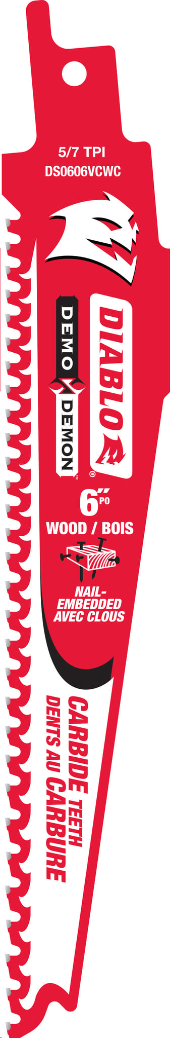 Reciprocating Saw Blade, Carbide, 6"x 5/7 TPI (nail-embedded wood)