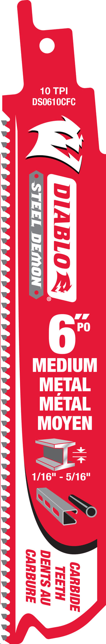 Reciprocating Saw Blade, Carbide, 6"x 10 TPI (metal cutting 1/16" - 5/16" thick