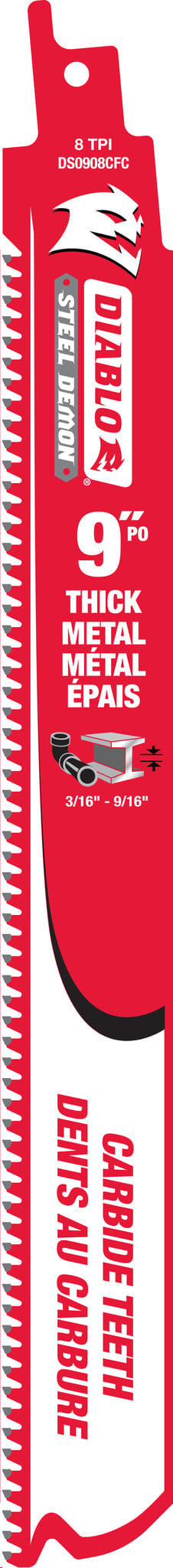 Reciprocating Saw Blade, Carbide, 9"x 8 TPI (metal cutting 3/16" - 9/16" thick