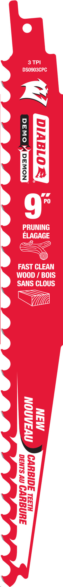 Reciprocating Saw Blade, Carbide, 9"x 3 TPI (pruning & rough cutting in wood)