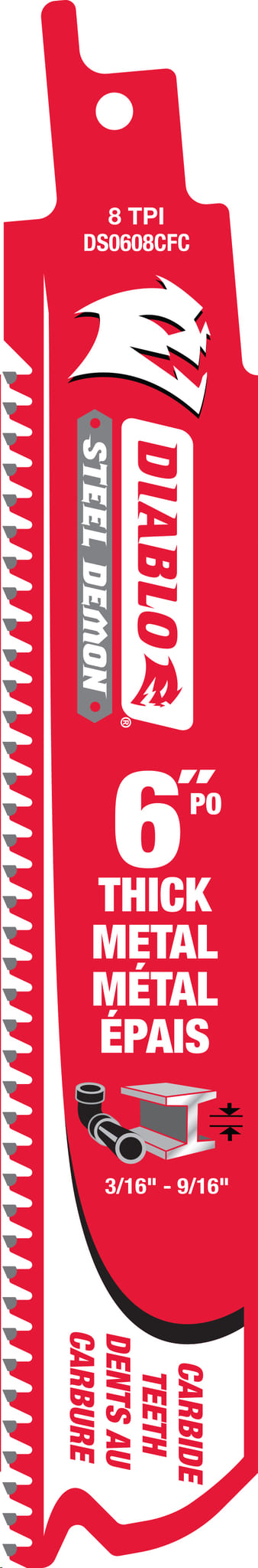 Reciprocating Saw Blade, Carbide, 6"x 8 TPI (metal cutting 3/16" - 9/16" thick
