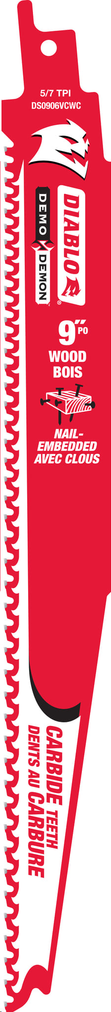 Reciprocating Saw Blade, Carbide, 9"x 5/7 TPI (nail-embedded wood)