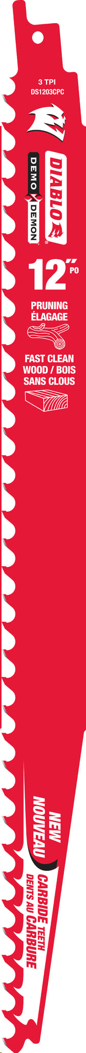 Reciprocating Saw Blade, Carbide, 12"x 3 TPI (pruning & rough cutting in wood)