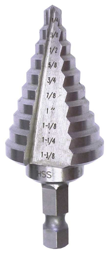 Step Drill Bit, 10 Step: 1/4" - 1-3/8", ROK