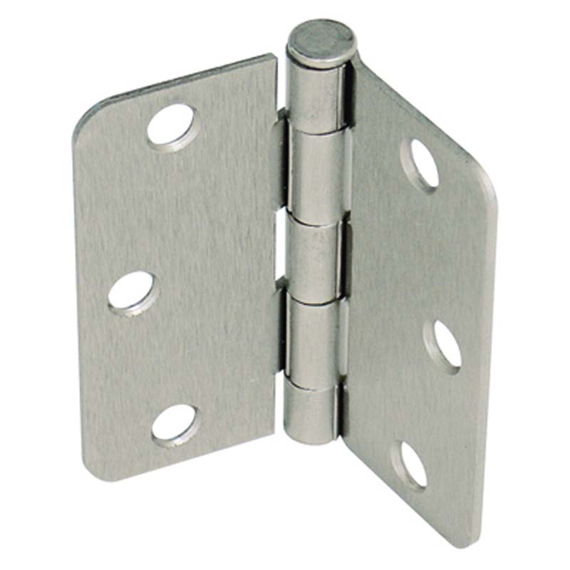Door Hinge, 1/4" Radius, 3-1/2" x 3-1/2", SATIN NICKEL, 1 pair/pkg, Taymor