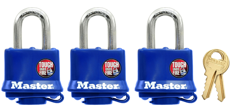 Padlock, Master, Thermoplastic Cover, Laminated Steel, 38 mm, Keyed-Alike, 3/pkg