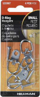 D-Ring Picture Hangers, Small, with Screws, 4/pkg