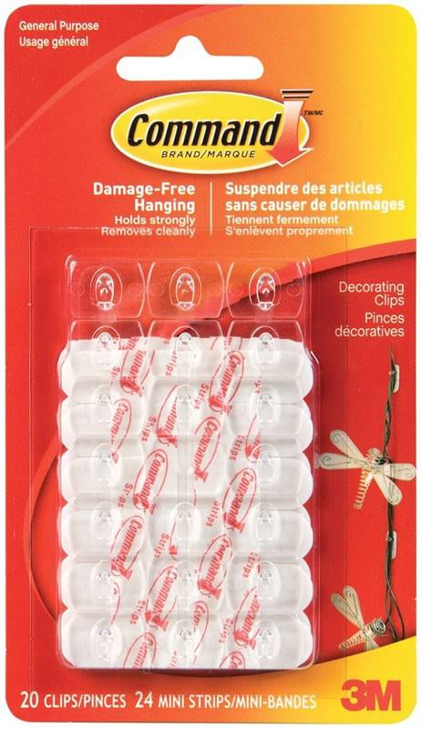 ~Clip, Self-Adhesive, Decorating, 3M Command, WHITE, 20/pkg (1/2 lb capacity)