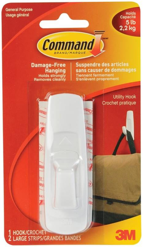 Hook, Self-Adhesive, Large, 3M Command, WHITE, 1/pkg (5 lb capacity) 17003C