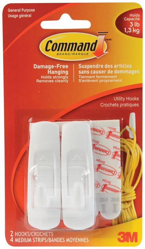 Hook, Self-Adhesive, Medium, 3M Command, WHITE, 2/pkg (3 lb capacity) 17001C