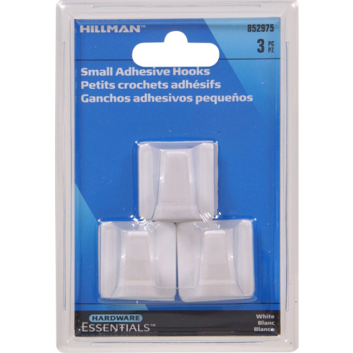 Plastic Hook, Self-Adhesive, Small, WHITE, 3/pkg