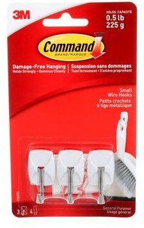 Hook, Self-Adhesive, Wire Utensil, 3M Command, WHITE, 3/pkg (1/2 lb capacity)