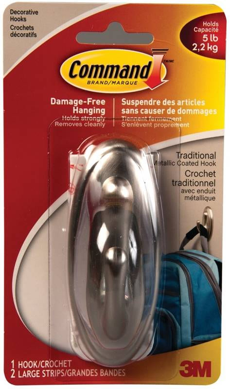 ~Hook, Self-Adhesive, Large, 3M Command, Traditional BRUSHED NICKEL, 1/pkg (5 lb capacity)