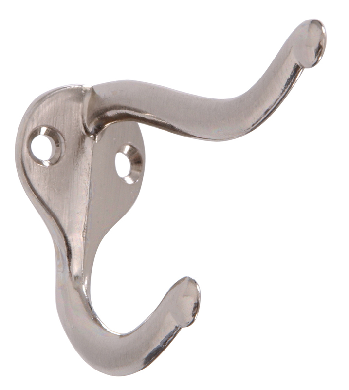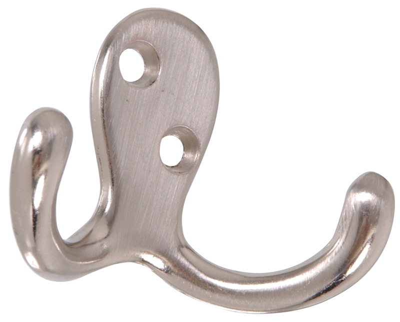 Clothes Hook, Double, SATIN NICKEL, 2/pkg