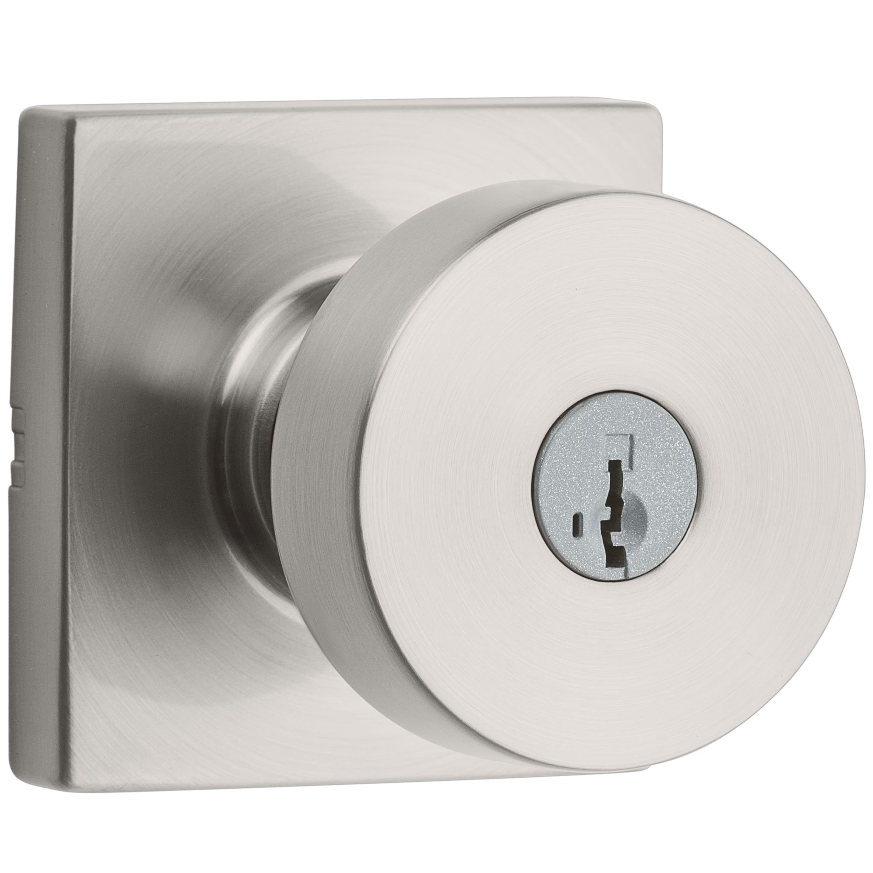Keyed Entry Knob Set, CAMBIE, Square Rosette, SATIN NICKEL, Weiser Visual Pack