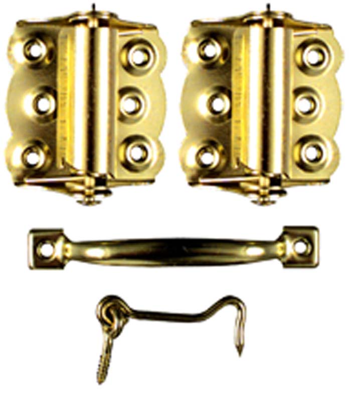 ~Screen Door Hardware Set (1 pr self-close hinges, pull, hook & eye) Brass-Plated, Ideal