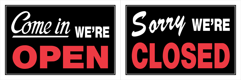 Sign, Plastic, 8" x 12", "OPEN/CLOSED" (Two-Sided)