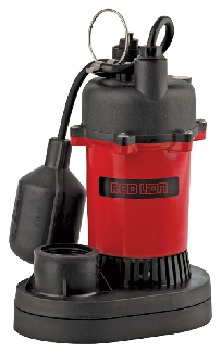Sump Pump, Submersible, 1/3 hp / 3200 gph max, Thermoplastic Case w/Tethered Float, Red Lion